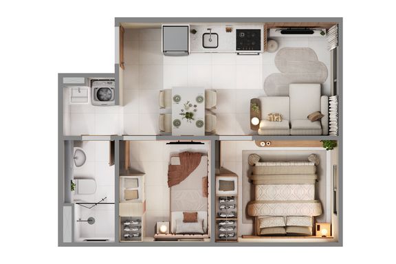- 2 dormitórios;